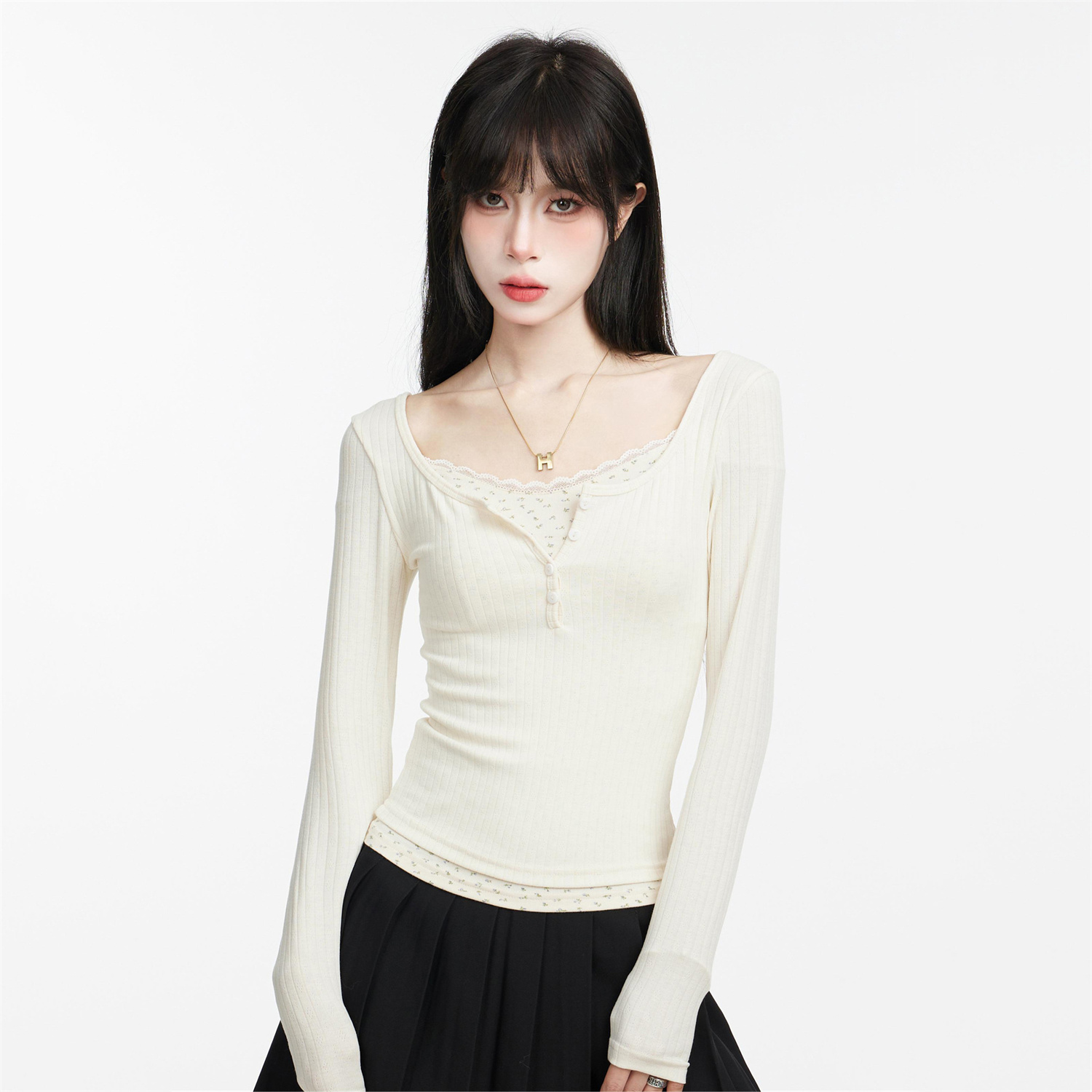 This arrived quickly and the first thing I noticed was— no harsh smell out of the box, Small touch, big difference. Glad I picked Lace Faux Two Long Sleeve Women Slim Fit, Spring Autumn, Layering up.