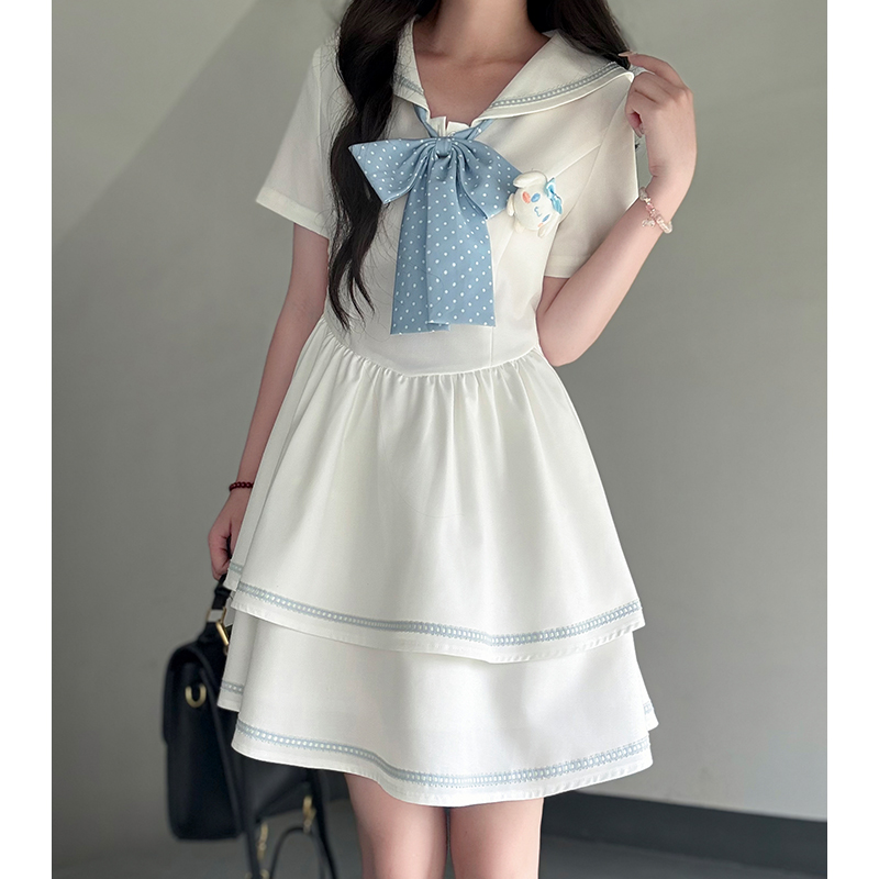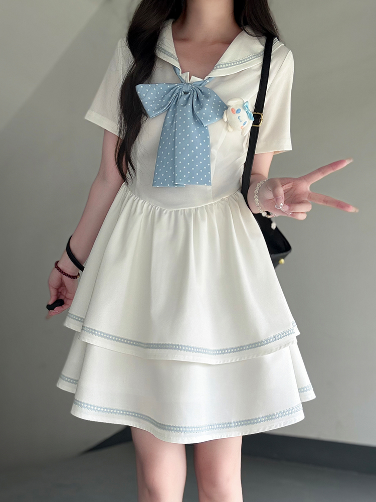 Navy Collar Short Sleeve Double Layer Cake Skirt Summer Dress – Summer Fits